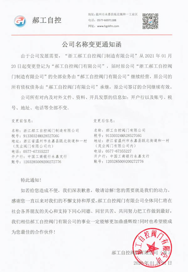 郝工自控閥門有限公司成立于2017年,現(xiàn)注冊資金3088萬元,致力于研發(fā)、解決工業(yè)自動化自控閥的生產廠家。公司立足于有著中國泵閥之鄉(xiāng)美稱的-溫州市永嘉縣甌北鎮(zhèn),業(yè)務覆蓋國內化工、石油、電廠、鋼廠、污水處理等眾多領域。目前公司擁有900多平方標準工業(yè)廠房,設備精良,滿足各類自控閥的生產需求。